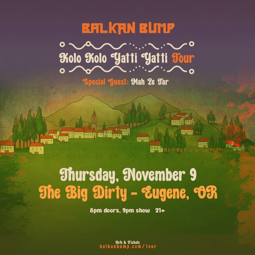 Welcome to Balkan Bump's Kolo Kolo Yatti Yatti Tour, headed to The Big Dirty on Thursday, November 9! His biggest tour yet, Kolo Kolo Yatti Yatti will deepen the Balkan Bump project and delve into the intricate tapestry of Balkan folk culture and the fascinating music/dance form of Kolo with special guest Mah Ze Tar!