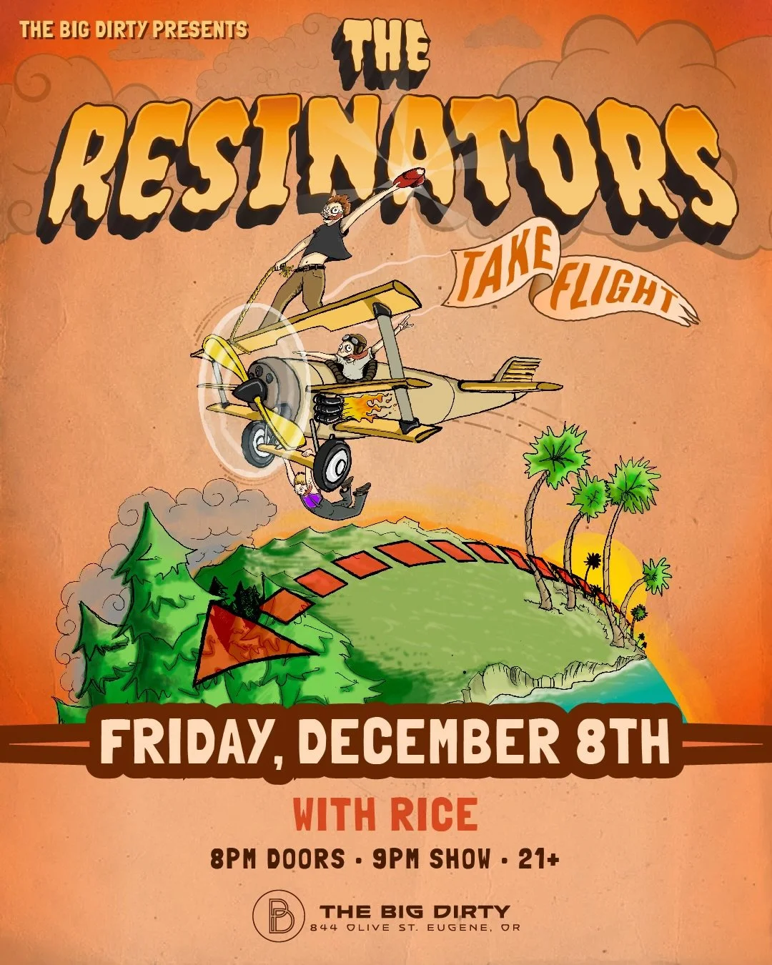 The Resinators are taking flight! Landing right here in Eugene, OR at The Big Dirty with special guest Rice on Friday, December 8!