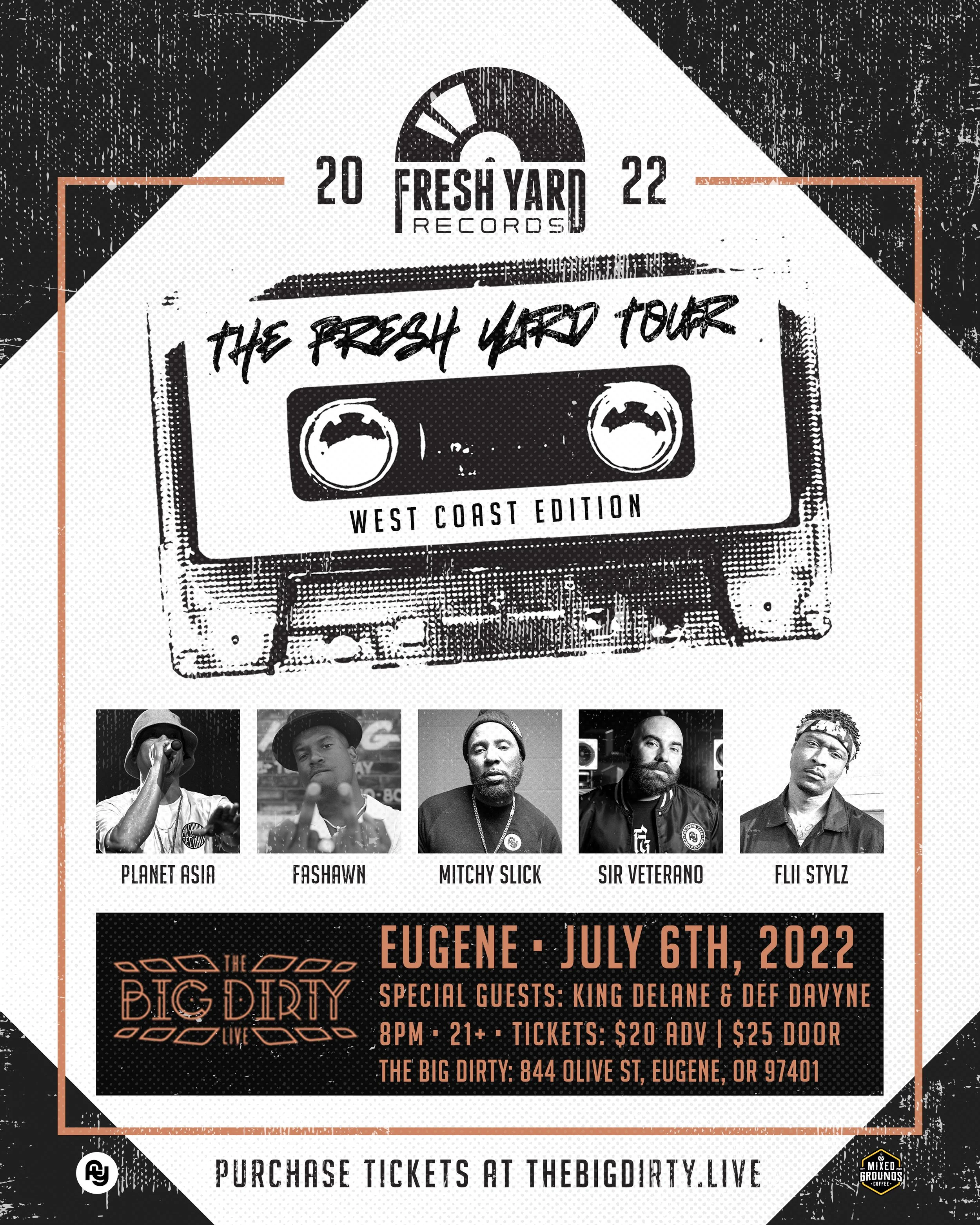 This powerhouse lineup of Fresh Yard's finest features: Planet Asia, Fashawn, Mitchy Slick, Sir Veterano, Flii Stylz Plus special local guests King Delane & Def Davyne!