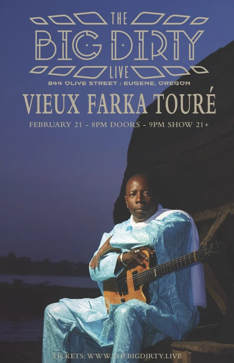 Vieux was initially a drummer / calabash player at Mali’s Institut National des Arts, but secretly began playing guitar in 2001. Ali Farka Touré was weakened with cancer when Vieux announced that he was going to record an album. Ali recorded a couple of tracks with him, and these recordings, which can be heard on Vieux’s debut CD, were amongst his final ones. It has been said that the senior Touré played rough mixes of these songs when people visited him in his final days, at peace with, and proud of, his son’s talent as a musician.Vieux worked tirelessly in the studio he built at his family's compound (which he named 'Studio Ali Farka Toure' in honor of his late father) to record his debut album for World Circuit Records/BMG, the prestigious UK-based record label with whom his father recorded and released most of his own work. The resulting album, 'Les Racines' (released June 2022), sees Vieux masterfully return to the deep roots of the Desert Blues music that his father introduced to the world and Vieux spent most of his career to date exploring, experimenting with, and expanding. 2022 also saw the release of a long-awaited collaborative album between Vieux and Houston-based psych-rock superstars Khruangbin called ‘Ali’ - an album on which the artists join forces to pay homage to Ali Farka Toure by reimagining eight of his songs together. The album was an instant hit around the globe, immediately getting millions of streams, enormous critical acclaim and even earning the praise of Sir Elton John who called it "one of the albums of the year - absolutely wonderful music." With each new project Vieux broadens his horizons, embraces new challenges and further entrenches his reputation as one of the world’s most talented and innovative musicians.