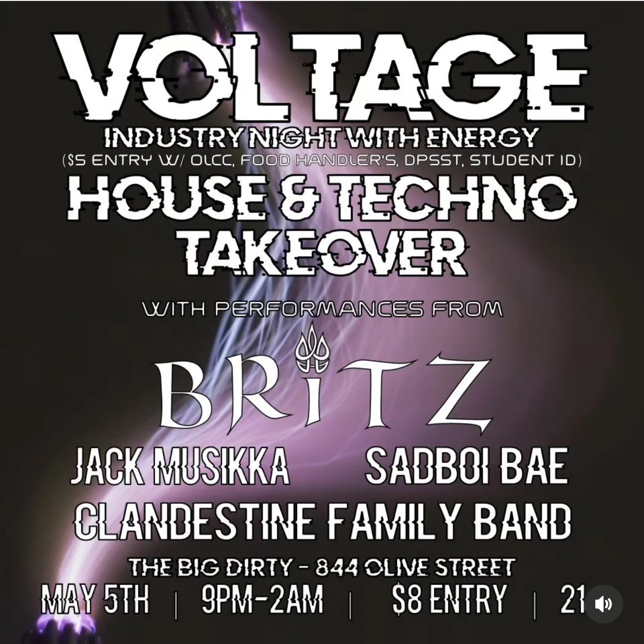 The Big Dirty Presents Voltage: Industry Night with Energy. Electronic Music with Energy, a fresh EDM night at The Big Dirty every 1st Sunday of the month!